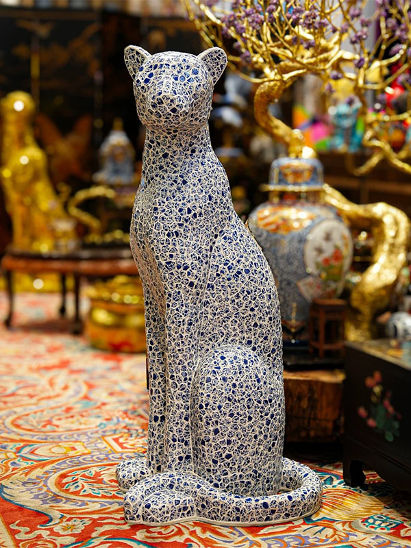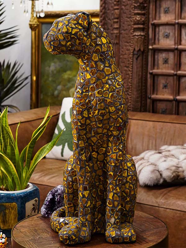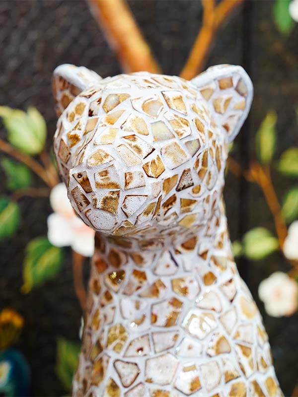 Custom Ceramic Mosaic Leopard Animal Sculpture - Handcrafted Ceramic Artwork