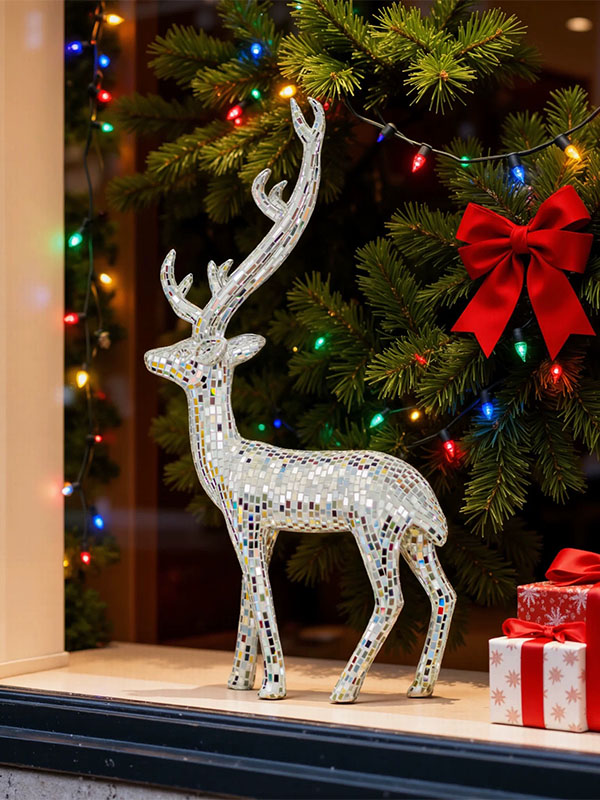 Handgefertigter Glasspiegel, Mosaik, Tier, Sika-Hirsch, Weihnachten, Hirsch, Skulptur, Kunsthandwerk, Hoteldekoration