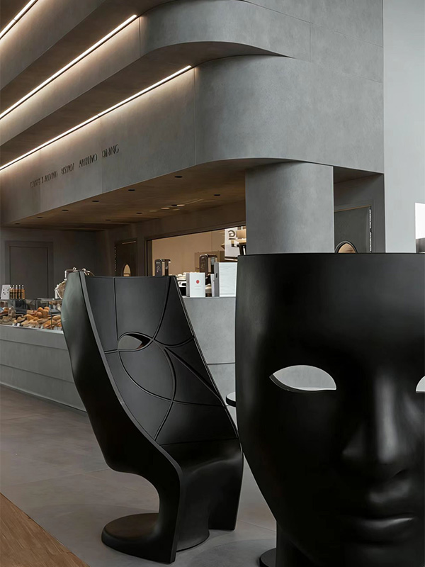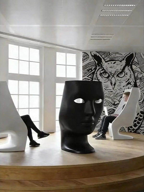 Maßgeschneiderte handgefertigte Spiegelmosaikmaske aus Harzglas, Freizeitsitz, abstrakte menschliche Skulptur, Harzskulptur, nordische abstrakte Ornamente, Club-Innen- und Außendekorationsverkaufsstellen